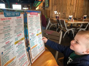 The last three nights we ate at Longhorn Steakhouse, LuLu’s and Hard Rock Cafe, all of which have their allergens posted online. My favorite by far was LuLu’s. They actually had separate menus for each food allergen AND a second waitress came out to take our order; she said the cook would make the boys’ food in a different area of the kitchen, change his gloves and use all new equipment. The service was SPECTACULAR, and it makes my heart so happy to watch my kids pick out food from a menu “just for them”.