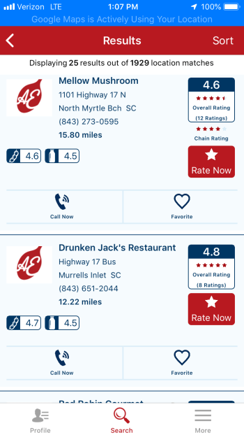 I got on the Allergy Eats app (which I highly recommend for people with food allergies) and started my research. Allergy Eats allows you to enter your location, then select your allergens. It will pull up all the restaurants in your area rated in order by how well each one accommodates those allergens. You can also read other people’s reviews.