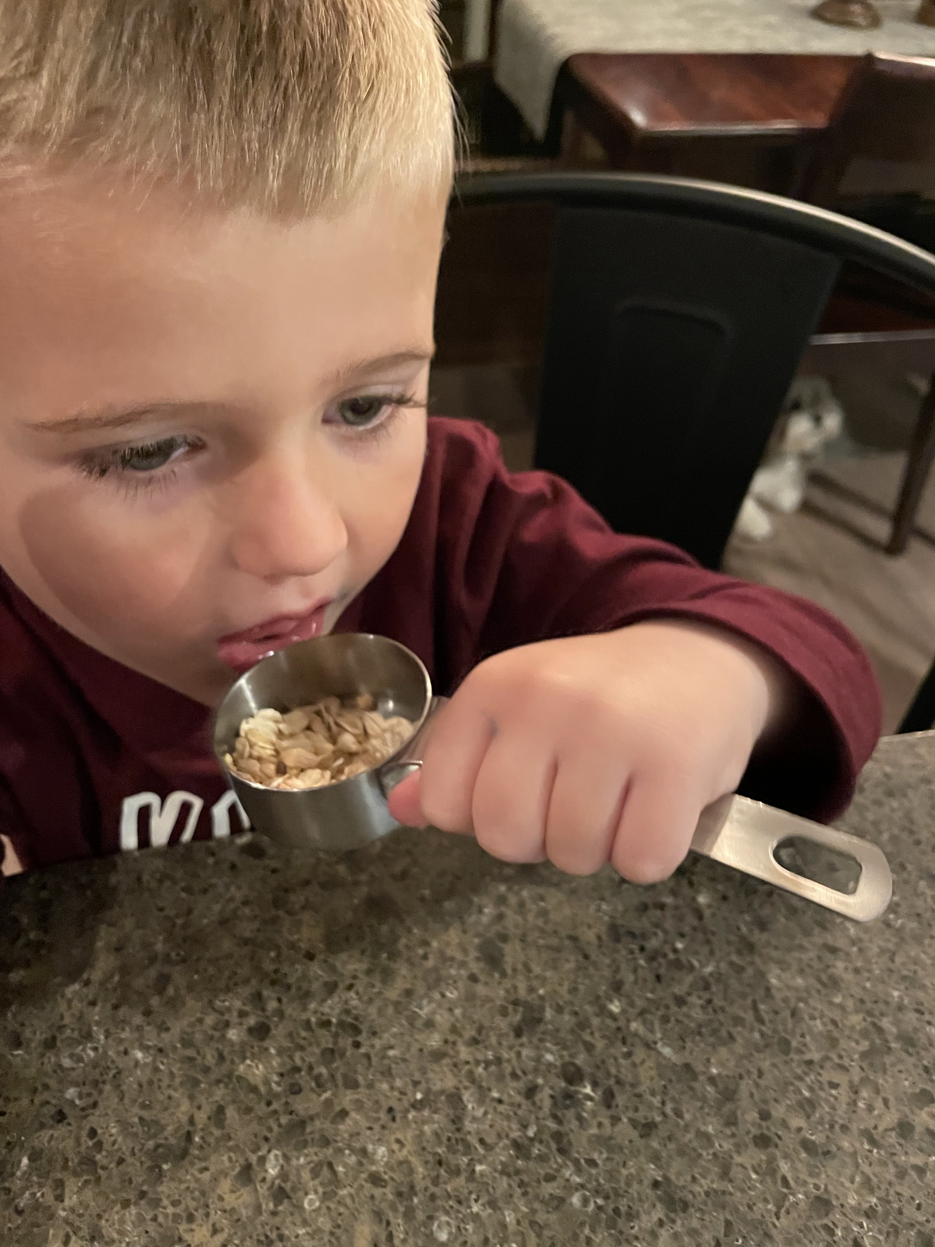 But watching my little man eat oats this morning for breakfast, for the first time in 3 1/2 years, caused a whirlwind of emotions. You guys, the last time he ate a Cheerio, he vomited 26 TIMES IN ONE DAY. My belly was fully of nerves and anxiety as he picked up that little oat and chowed it down with a smile on his face; my heart was full of happiness and excitement. We have been patient with oats for many years, but we don’t have to be anymore.